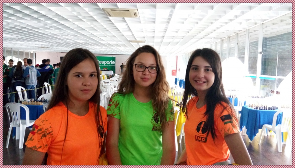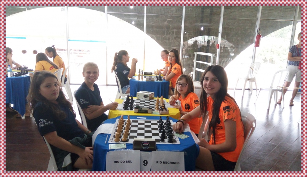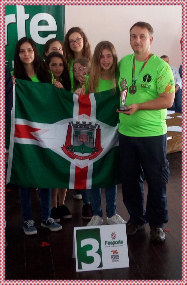 RESULTADOS: naipe feminino que figurava com 6ª equipe ranqueada obteve o BRONZE equipe e geral, pontuando para o município com 6 pontos (21%) no quadro geral, 1 troféu (33%)no quadro geral e 5 medalhas (31%) no quadro geral. Como não poderia deixar ser, com muita emoção e pressão na última rodada ao enfrentar e vencer o confronto após três horas de jogo contra a equipe de Concórdia conduzida pelo Mestre Internacional argentino Leandro Perdomo que precisava apenas do empate para ficar no podium.