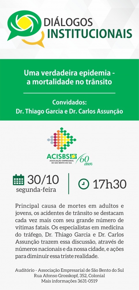 Convite ACISBS: Diálogos Institucionais - Uma verdadeira epidemia - a mortalidade no trânsito