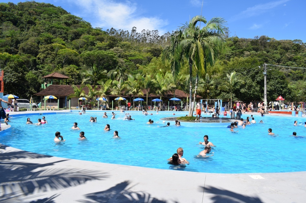 Durante a festa as pessoas puderam aproveitar as piscinas, tobogãs, jogos de mesas e cama elástica para as crianças.