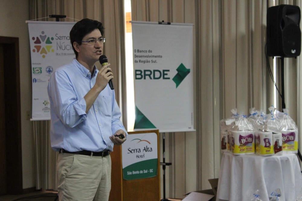 Antes da apresentação principal, o gerente regional do Banco Regional de Desenvolvimento do Extremo Sul (BRDE), Nivaldo Presalino Vieira, falou de condições diferenciadas de acesso ao crédito para empresas inovadoras. Também, os integrantes do Núcleo de Jovens se apresentaram e deram as boas-vindas aos participantes. A presidente interina da Acisbs, Cleyde Treml, deixou sua mensagem falando da força dos jovens no associativismo.