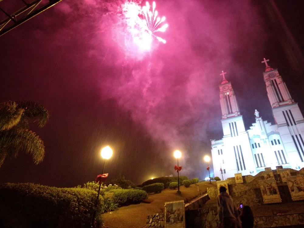 O público que permanecia ainda na rua pôde presenciar a descida do Papai Noel na escadaria da igreja, que mesmo sob chuva, permaneceu no palco levando sua mensagem e iniciando a chuva de balas, que mesmo misturada com chuva, fez a alegria do público.