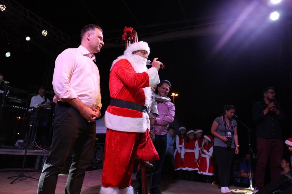 Antes do acendimento, no palco a banda Luzes da Cidade se revezou nas canções natalinas ao lado de coral infantil e convidados. Até mesmo o prefeito soltou a voz, ao cantar a música “A Paz”, junto com o grupo musical, famoso em Rio Negrinho em anos passados, e que se reuniu novamente para esta apresentação pra lá de especial. O evento teve início por volta das 20 horas, e contou com presença de autoridades locais e estaduais. O deputado estadual Cleiton Salvaro ressaltou a beleza da cidade, enquanto o deputado estadual e presidente da Assembleia Legislativa Silvio Dreveck destacou o poder do engajamento da comunidade para que a decoração fosse especial. Também presente no evento, o deputado estadual Patrício Destro chegou em Rio Negrinho com dois “presentes”: aproveitou o ato para assinar a liberação de duas emendas parlamentares suas destinadas a Rio Negrinho, uma repassando R$ 75 mil para a compra de instrumentos musicais para a Escola de Música, e a outra de R$ 120 mil para a compra de um micro-ônibus para o transporte de atletas da Fundação Municipal de Esportes. “São pedidos que nos foram feitos e que fizemos questão de entregar aqui hoje neste momento de festa”, ressaltou o deputado.