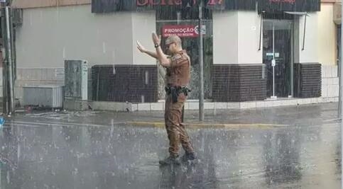 A imagem do policial debaixo de chuva forte para ajudar a população viralizou na internet. Mesmo sabendo que ele estava fazendo o seu trabalho, a atitude chamou a atenção das pessoas que passavam, as quais não deixaram de registrar a cena e compartilhar a foto.
