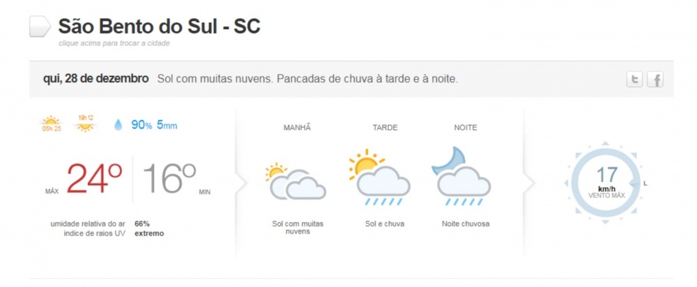 A última quinta-feira de 2017 deve ser de sol com nuvens em todas regiões de Santa Catarina e de temperaturas elevadas. No Vale do Itajaí, Norte do estado e Grande Florianópolis deve ocorrer pancadas de chuva isoladas ao longo do dia.