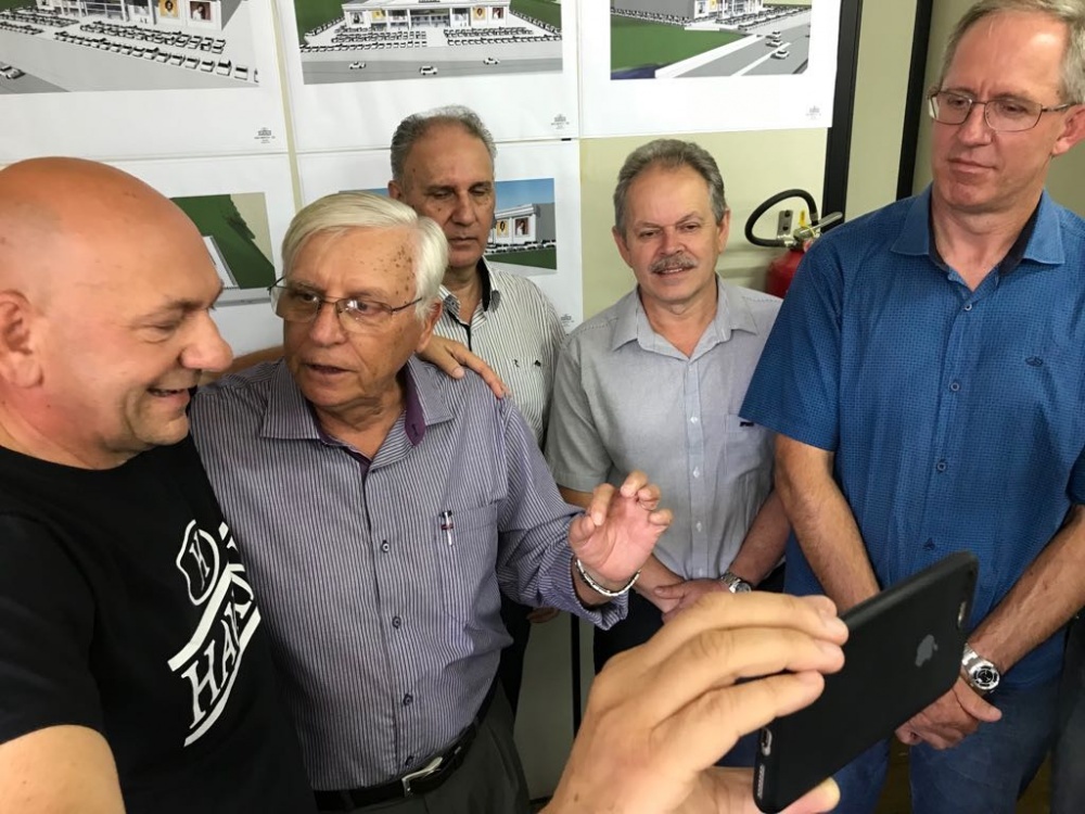 Luciano Hang com os vereadores Jaime Lima, César Godoy, Edi Salomon e Claudiomar Wotroba