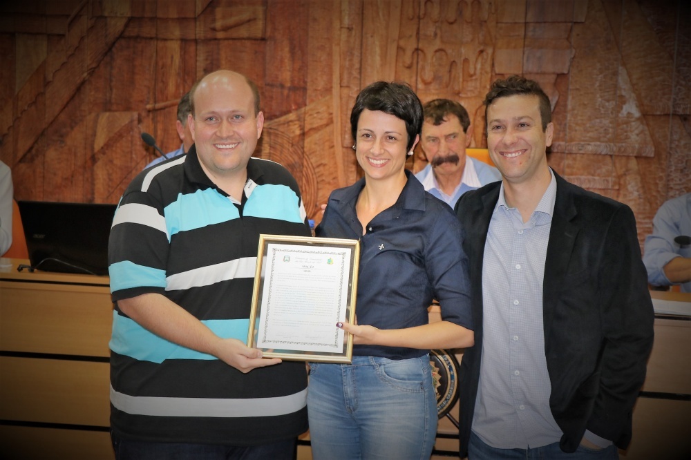 Na sessão ordinária de segunda-feira (19), Luíza da Silva recebeu a entrega de moção de aplausos no Plenário Luiz Carlos Constesini, pela representatividade conquistada através da eleição à Presidência Nacional da JCI Brasil. A homenagem foi de autoria dos vereadores Marco Redlich (PP) e César Godoy (PSB).