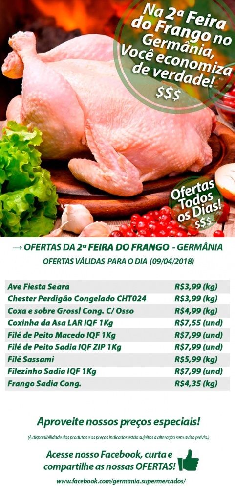 Promoção válida apenas para hoje 09/04 no Germânia