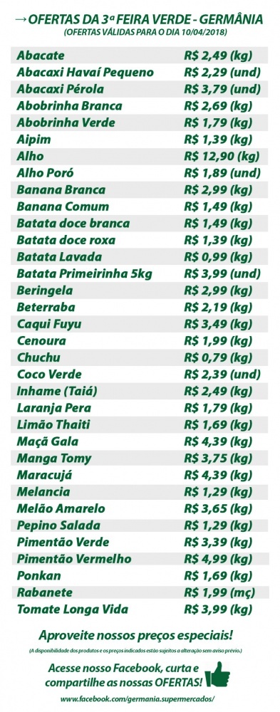 Promoção válida para hoje 10/04 no Germânia Supermercados