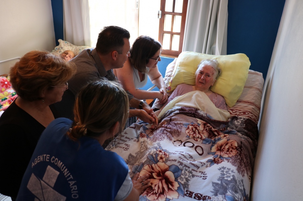 Nesta primeira etapa do trabalho, serão atendidos os cerca de 150 pacientes acamados usuários de medicamentos de atenção básica de uso contínuo cadastrados no Sistema Único de Saúde (SUS) do município. “Os familiares não precisarão mais ir nos postos de Saúde buscar os remédios, os agentes comunitários de Saúde vão levar em casa”, ressaltou o prefeito Julio Ronconi durante a primeira entrega, realizada para o casal Arthur e Sybilla Alves Leal, e também na casa de Nilson Machado dos Santos, que moram no Loteamento Novo Horizonte, no bairro São Rafael. Conforme o prefeito, durante a entrega os agentes já verificarão se os medicamentos entregues no mês anterior foram utilizados. “A partir do momento que eles entregarem em casa, vão poder verificar remédios que eventualmente sobraram e que serão levados de volta ao posto, para que possa atender outras pessoas”, ressaltou Julio.