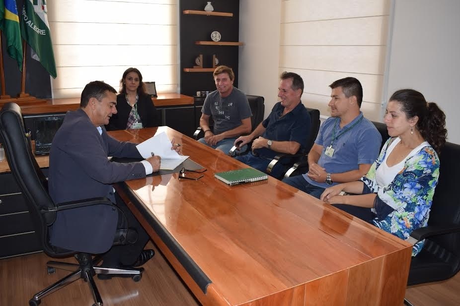 Na assinatura da ordem de serviço, presente também a Secretária de Esportes, Marilia Scheffer; Coordenador de Esportes, Marcio Munhoz; Chefe do Serviço de Suprimentos, Maria Cristina Munhoz; e o representante da empresa.