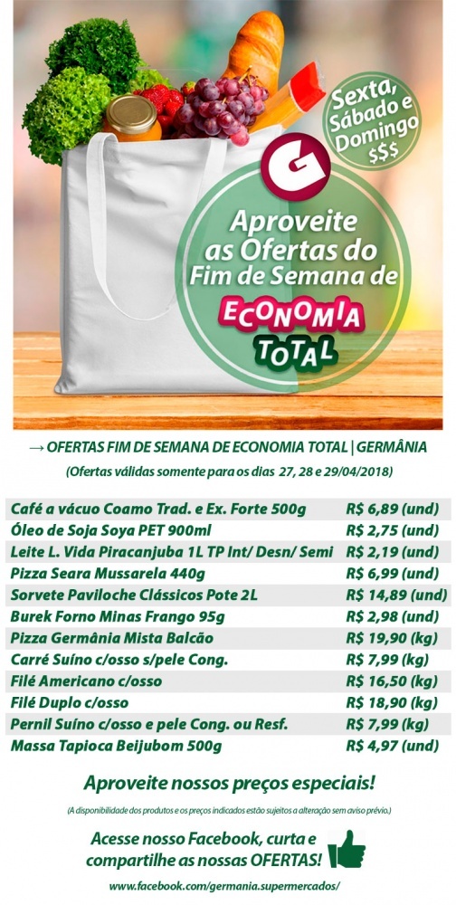Ofertas do fim de semana Germânia Supermercados 27/28/29 de abril