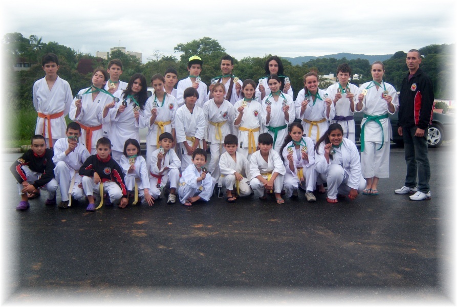 Rio Negrinho - A Escolinha de Caratê da FME de Rio Negrinho, que tem como técnico o Sensei Valdir Antunes esteve no sábado dia 14 de maio, participando na cidade de Jaraguá do Sul, da segunda etapa do campeonato estadual de Caratê. O evento contou com a participação de 12 municípios, e aproximadamente 480 atletas, onde a Seleção da Escolinha de Caratê conquistou Vinte e Sete Medalhas, sendo elas 09 de ouro, 10 de prata e 08 de bronze.