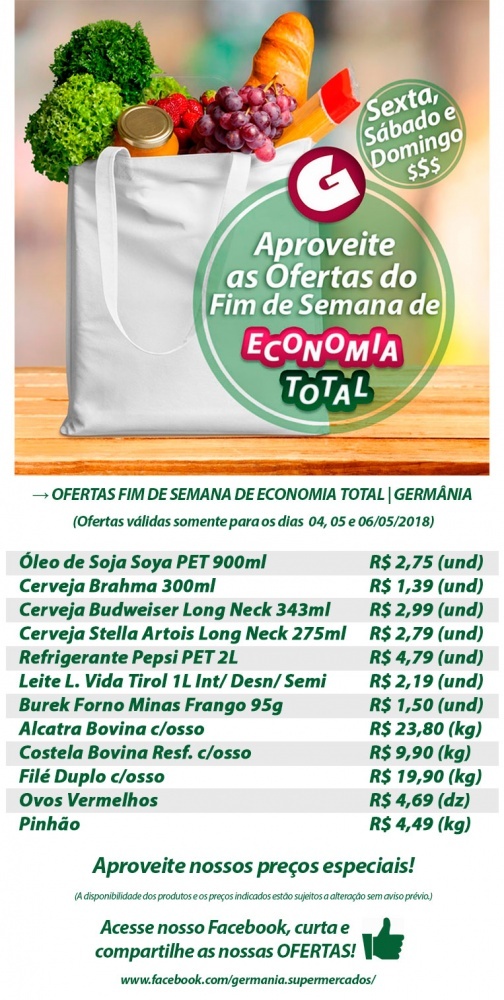 Ofertas do fim de semana Germânia Supermercados 04/05/06 de maio