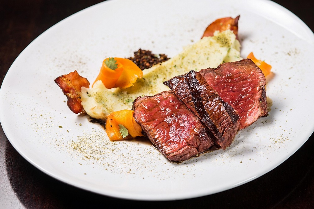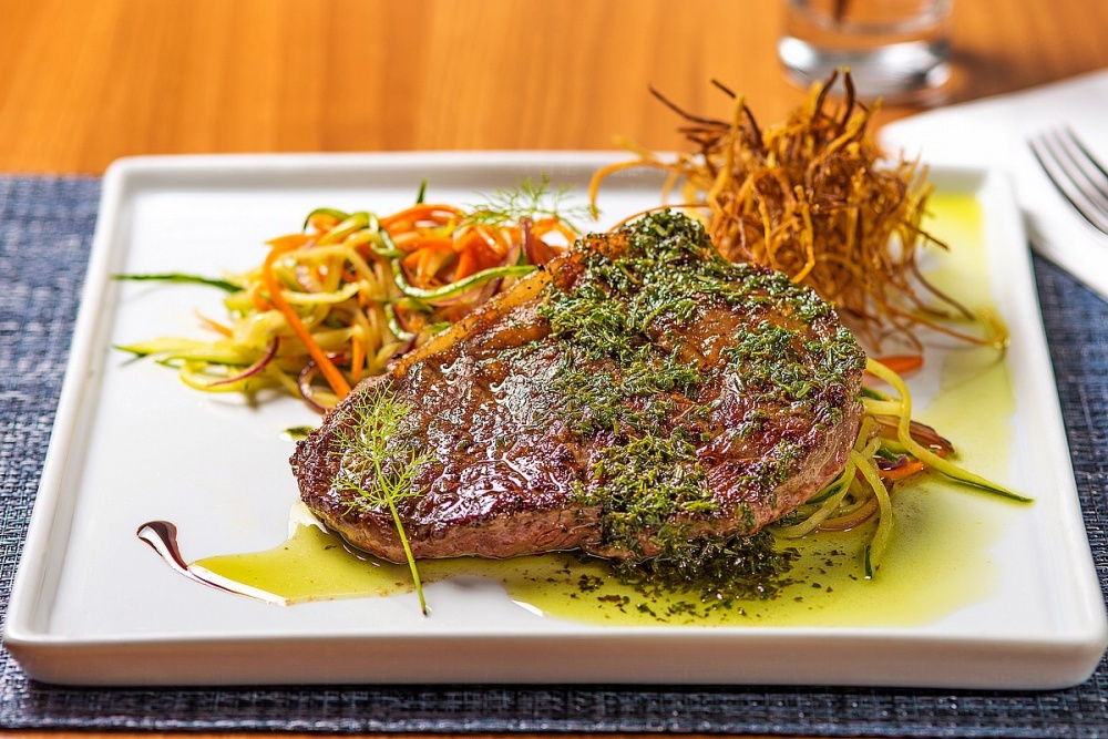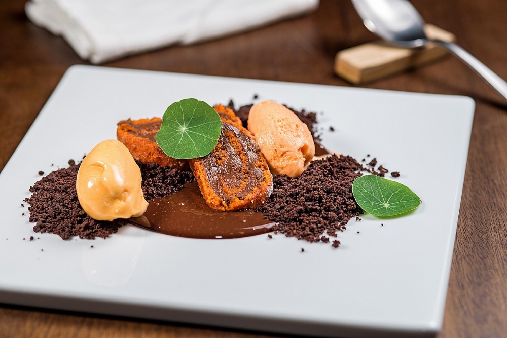 Os pratos principais trazem desde a nossa tradicional caldeirada de peixe e frutos do mar, neste caso acompanhando chips de banana da terra e arroz com abacaxi, além de um duo de mignon e vieiras, que destaca terra e mar no mesmo menu. Vegetais em formato de talharim temperados na manteiga de ervas, assim como um porco colonial assado por 8 horas também roubam a cena.