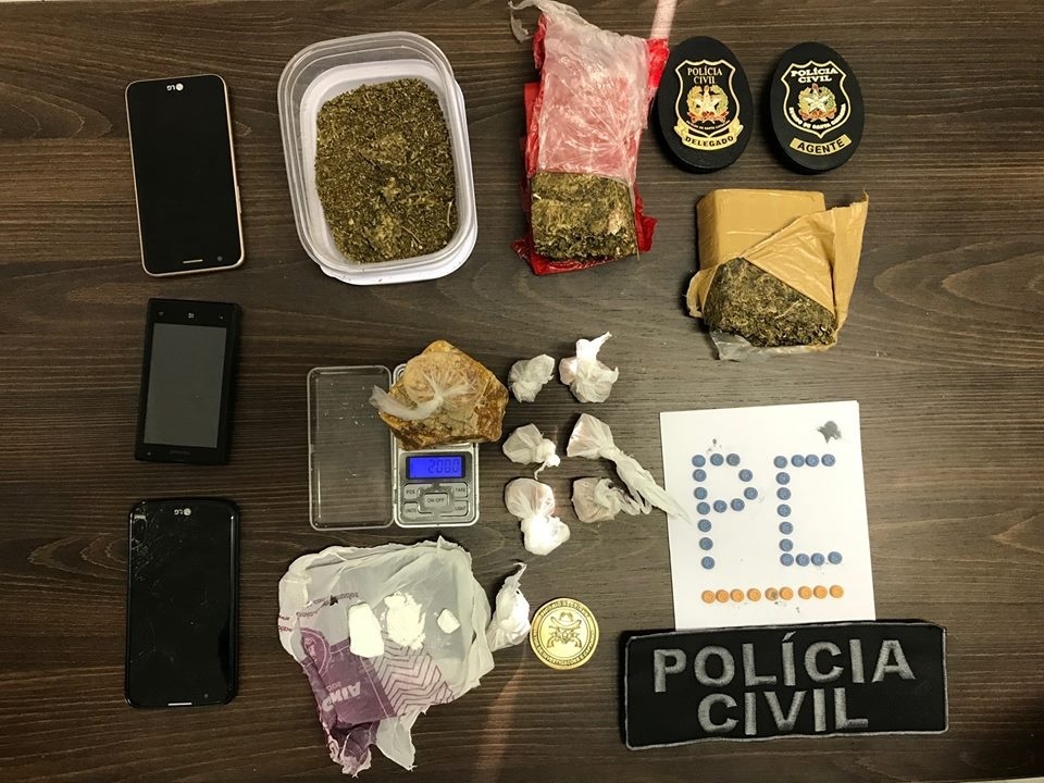 Diante das fundadas suspeitas sobre a ocultação de drogas no interior das casas, bem como diante da franquia do ingresso pelo pai do adolescente, que é dono dos imóveis, e também pelo investigado K. L. F. os policiais efetuaram buscas no local e apreenderam aproximadamente 530 gramas de maconha, 260 gramas de crack, 15 gramas de cocaína, além de 35 comprimidos de êxtase e uma balança de precisão.