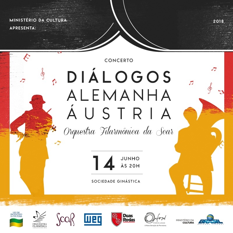 A Orquestra Filarmônica da SCAR segue sua viagem musical, dessa vez com destino à Europa, berço de grandes compositores da história da música clássica. O Concerto Diálogos Alemanha – Áustria acontece nessa quinta-feira, 14 de junho, às 20h, na Sociedade Ginástica São Bento.