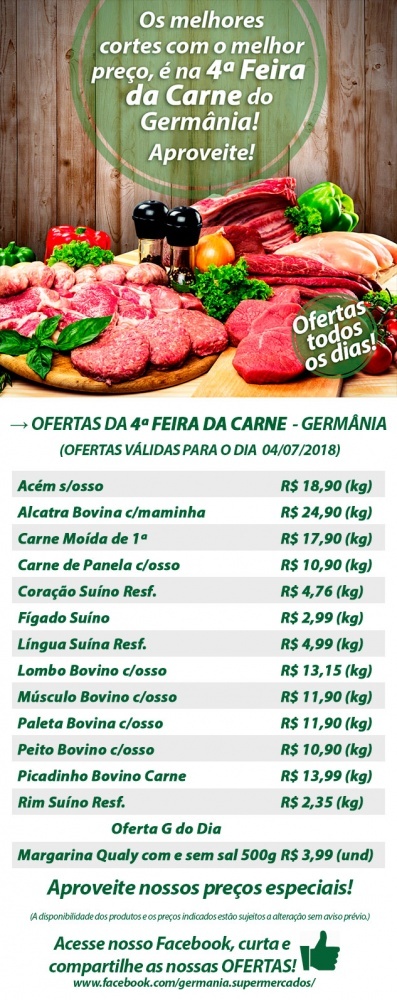 Promoção válida para hoje 04/07 no Germânia Supermercados