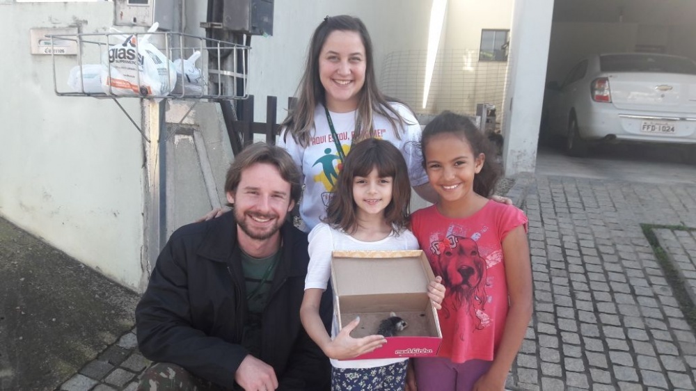 A ligação foi feita pela estudante Nayla Martini Peres, 8 anos, que aguardava os biólogos da Fujama com o animalzinho dentro de uma caixa de sapatos e muito empolgada e curiosa em saber mais sobre o mesmo. De acordo com o biólogo e Chefe de Educação Ambiental da Fundação Jaraguaense de Meio Ambiente, Christian Raboch Lempek, foi ela mesma quem fez o registro junto à Ouvidoria com o apoio da mãe.