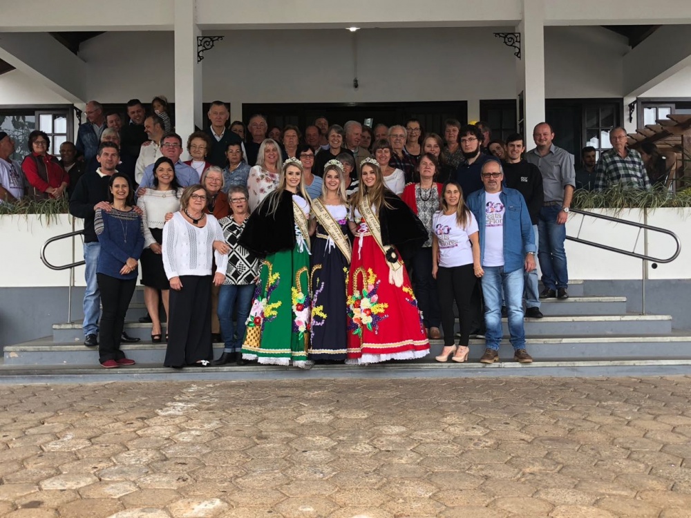 Ainda como parte das festividades pelo octogésimo aniversário, associados da AJAO se reuniram em almoço especial, no domingo (22). O evento teve a presença ilustre da rainha e princesas da 80ª Festa das Flores, Larissa Baechtold, Letícia Mueller e Bárbara Fleith.
