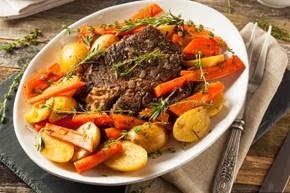 Na Panela de Pressão Elétrica PCE20, aqueça o óleo, adicione a carne e frite até dourar, junte a cebola, o alho e refogue. Acrescente o molho de tomate e o cubo de caldo de carne. Na Jarra Elétrica Expressionist EKP50, ferva a água e acrescente sobre a carne na panela até cobri-la. Tampe e programe o cozimento para 25 minutos. Retire a pressão, abra e acrescente a batata e a cenoura. Tampe a panela e programe por mais 15 minutos ou até os vegetais estarem cozidos. Sirva em seguida.