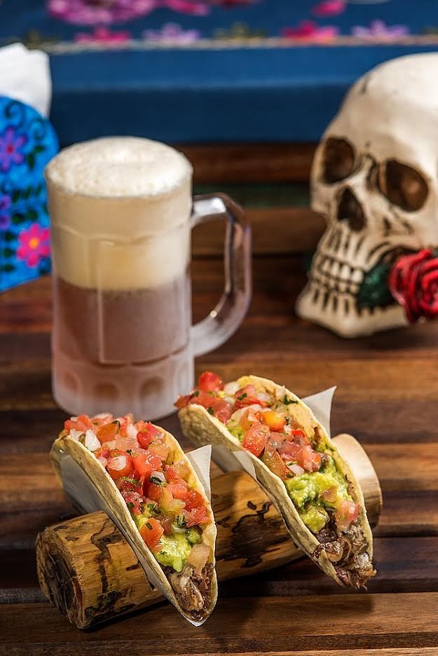 Nome do prato: taco de brisket - brisket defumado produzido pelo miguelito com guacamole, pico de gallo.