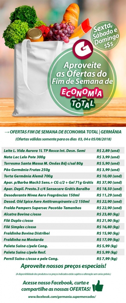 Promoção válida para os dias 03/04 e 05/08 Germânia