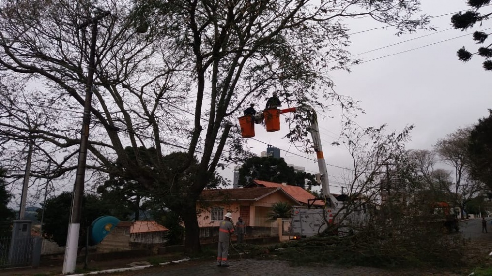 A CELESC está realizando o corte na linha área (galhos) que tocam na rede elétrica de alta tensão e a prefeitura realiza remoção das árvores com o corte até a altura da calçada, exceto raiz. Equipe da Prefeitura também realiza limpeza do local com a coleta do entulho que está sendo destinado ao aterro sanitário. “O principal objetivo desta ação é manter a qualidade de energia elétrica fornecida pela CELESC e a segurança dos pedestres ao transitarem pelas calçadas”, explicou o Secretário de Meio Ambiente e Desenvolvimento Urbano, Delfim Girardi.
