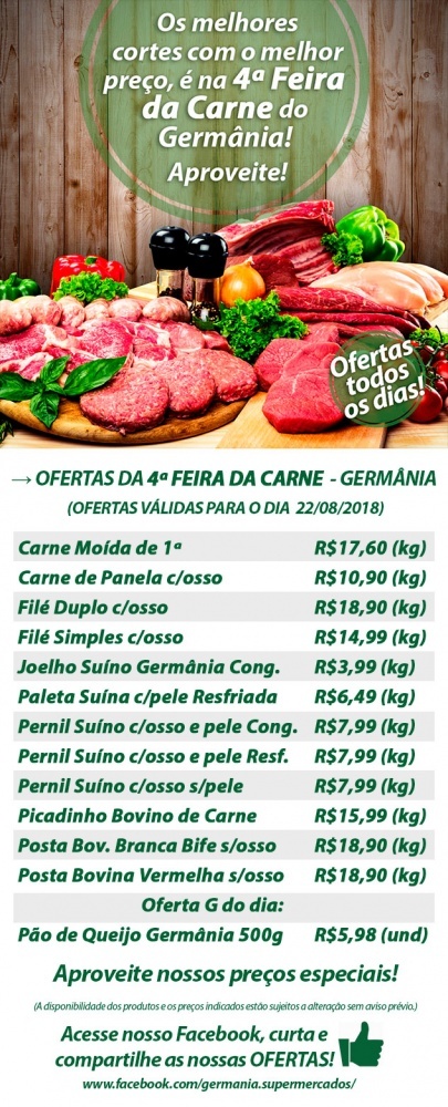 Ofertas desta Quarta-Feira da Carne 22/08 dos Supermercados Germânia!