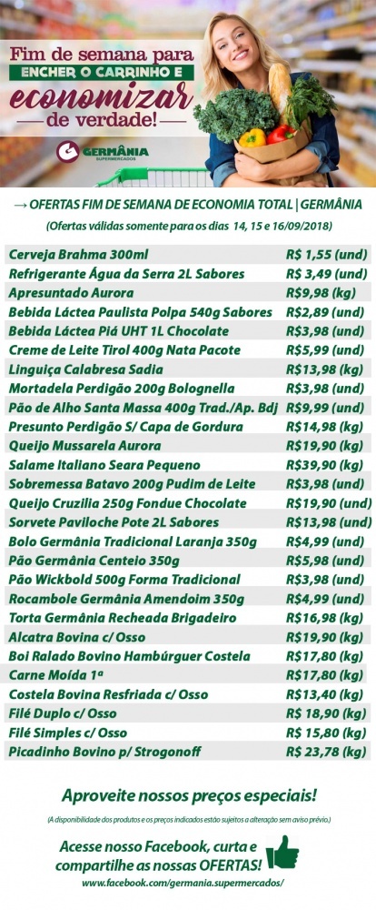 Ofertas do Germânia Supermercados para o Final de Semana da Economia Total, dias 14, 15 e 16/09