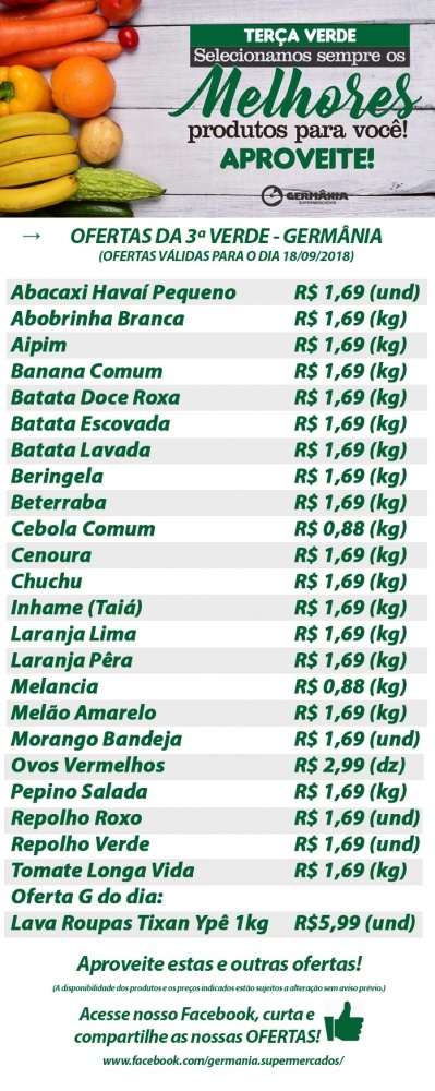 Ofertas do Germânia Supermercados para esta terça-feira dia 18/09/2018