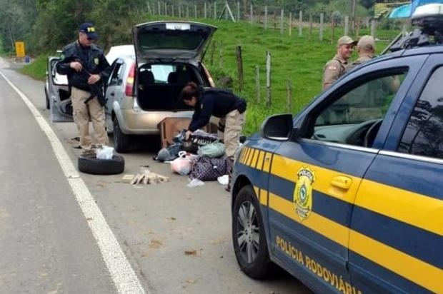 Os automóveis foram abordados durante operação das polícias. No interior do Fiesta, conduzido por uma mulher de 30 anos, foram encontrados sete tabletes de maconha totalizando 5,130 quilos. Um dos volumes da droga estava no colo da passageira, de 52 anos, e os outros seis foram encontrados dentro da forração das portas.