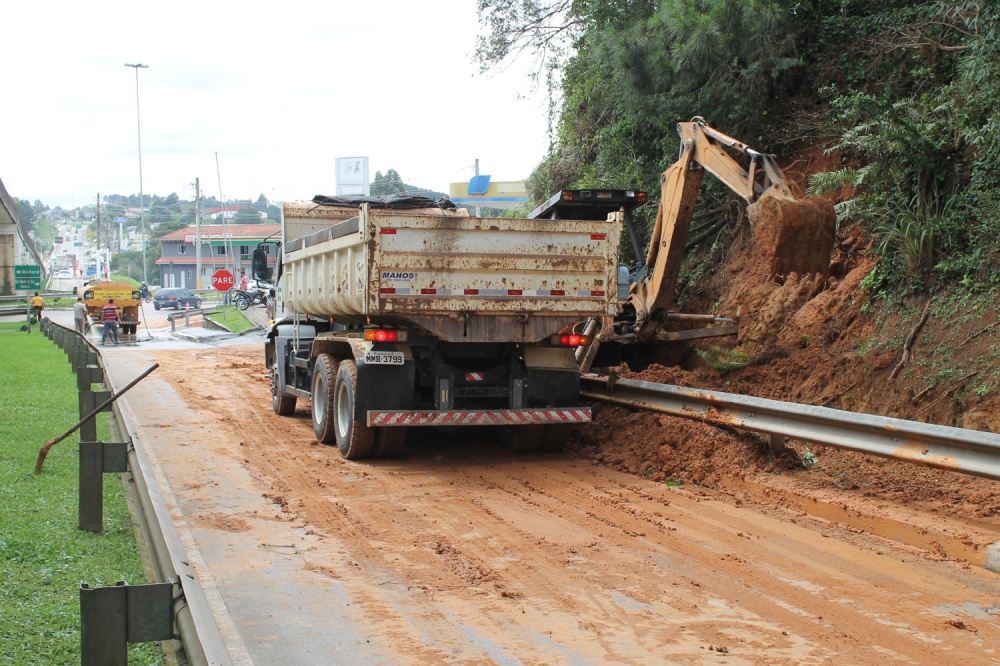 No principal acesso a cidade, na SC 418, acesso lateral do viaduto de Oxford, uma barreira deslizou sobre a calçada e sobre a pista, prejudicando o tráfego pelo local.