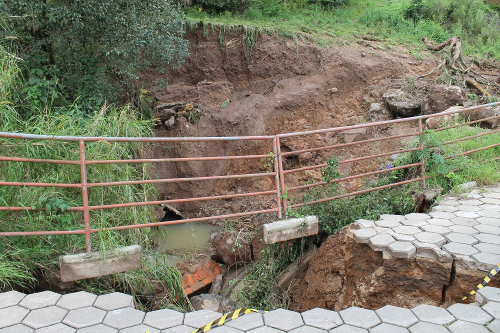 A forte chuva causou um grande acúmulo de água que causou erosão, deslocamento da tubulação e comprometeu pelo menos meia pista do trecho inicial da via.