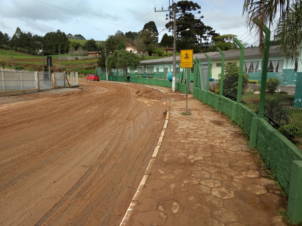 As ruas Emílio Weber, em todo o trecho da EBM Baselisse C. R. Virmond, e rua Matilde Koch no bairro Colonial, região conhecida como Urca, amanheceram tomadas pela lama, pedras e entulhos, que inclusive atingiram diversas residências da região.