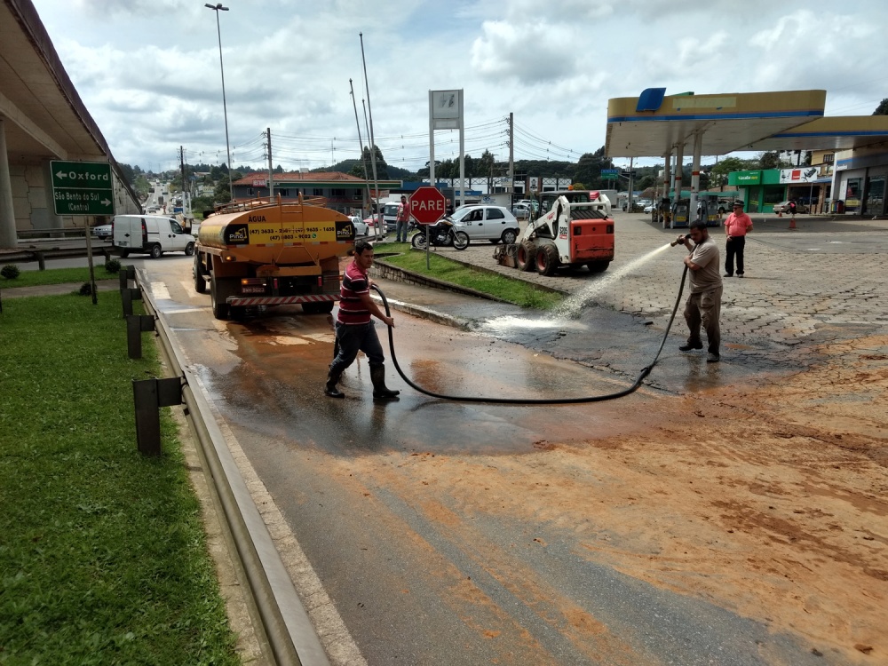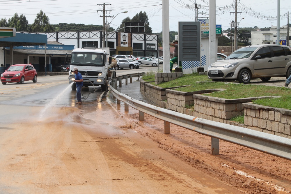 Logo cedo equipes da Secretaria de Obras e Detru estiveram no local para providenciar a limpeza da via e o controle do trânsito, que em parte foi desviado.