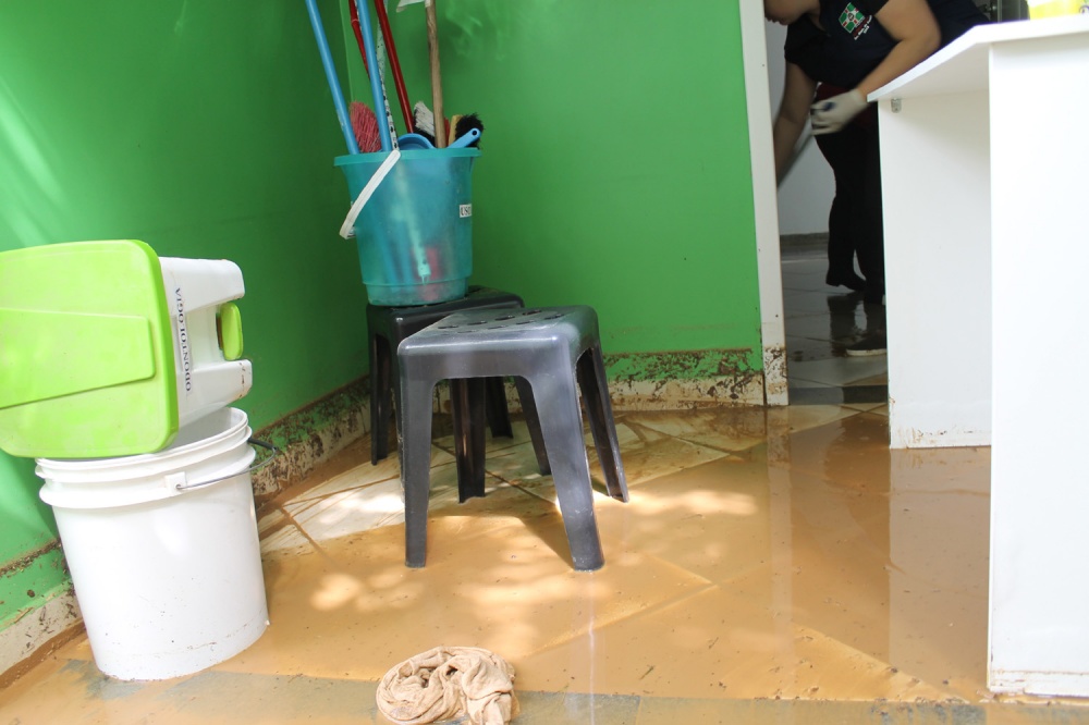 Toda a equipe do ESF contando com a ajuda do vice-prefeito Marcio Dreveck trabalhou para a limpeza da estrutura. O que se via no local eram os profissionais com mangueiras e rodos lavando o piso e retirando toda a lama que tomou conta da unidade de saúde. Alguns equipamentos que estavam no chão ficaram molhados e danificados.