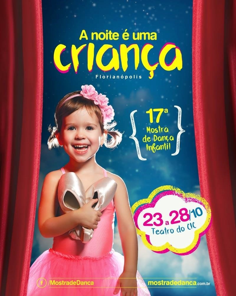 Com números recordes de 2.772 bailarinos e 284 coreografias, o Instituto Cultural Desterro (ICD) realiza de 23 a 28 de outubro, no Teatro Ademir Rosa, no Centro Integrado de Cultura (CIC), o evento A Noite É uma Criança – 17ª Mostra de Dança Infantil Florianópolis.