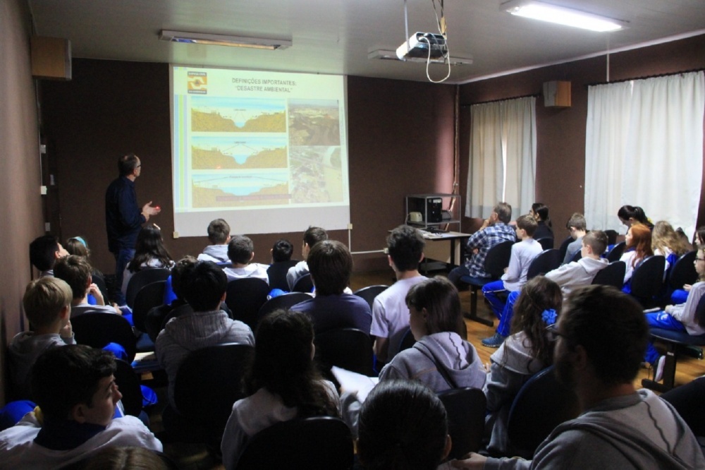 Na unidade, o encontro foi voltado aos estudantes do 5º ao 8º ano do ensino fundamental. Segundo o engenheiro Rubens Muhlbauer, é importante que as atividades e as formas de monitoramento desenvolvidas pela Defesa Civil cheguem até os mais jovens, já que a tecnologia e a comunicação são dominadas por eles com facilidade. “Cada fala dessa palestra será importante não só para vocês, mas para aquele amigo que mora próximo ao rio, para o vizinho que está preocupado ou para qualquer pessoa que esteja em sua rede social, por exemplo. Por isso, compartilhem e mostrem para todos o que vamos aprender hoje”, comentou no início da palestra.