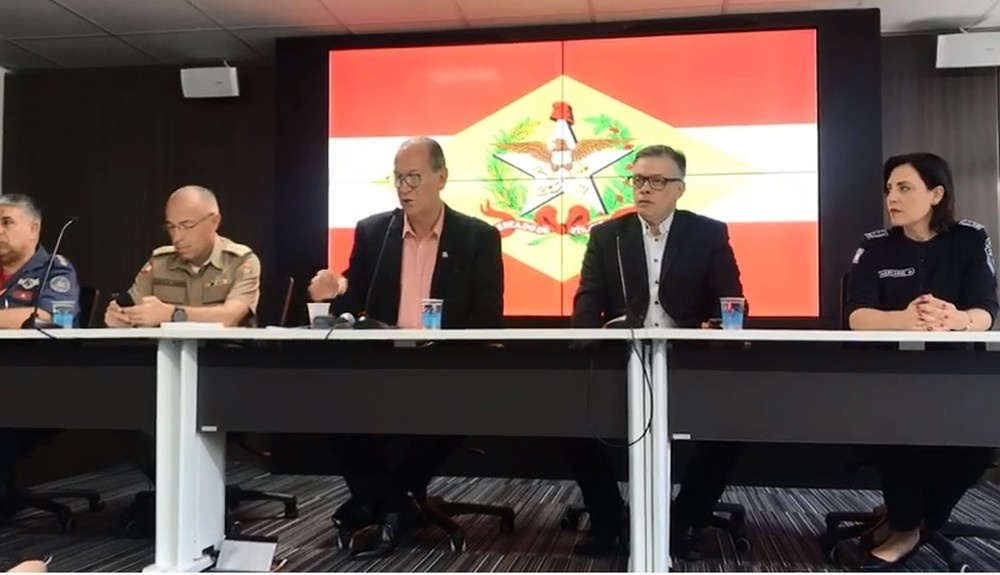 Secretário de Segurança Pública de SC, Alceu de Oliveira Pinto Júnior, em entrevista no CIGERD. — Foto: Graciela Andrade/NSC TV