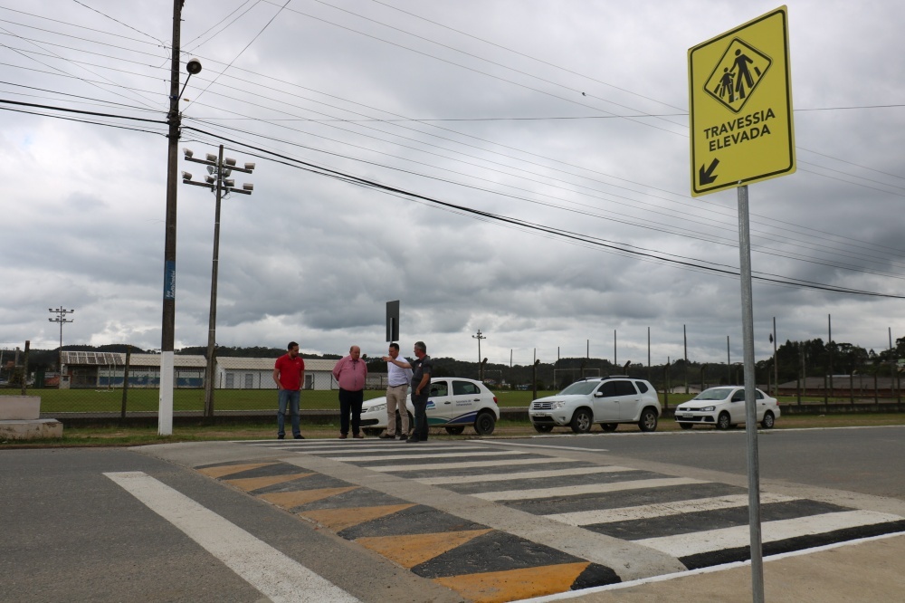 Nesta semana, o secretário de Proteção Civil e Segurança Pública de Joinville, Bráulio César da Rocha Barbosa, esteve em Rio Negrinho para conhecer o sistema de construção de faixas-elevadas em concreto adotado pela Prefeitura, e que apresentam um custo de mais de três vezes menos que o mesmo modelo em asfalto. A apresentação foi feita pelo prefeito Julio Ronconi e pelo secretário de Infraestrutura Hélio Clemente.