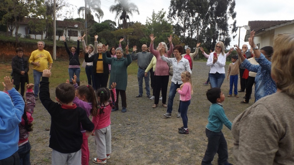 A atividade iniciou com uma dinâmica com os alunos e avós na Associação de Moradores do bairro Vila Nova. “Foi um momento especial já quando eles começaram a chegar, no encontro estimulamos o abraço e a troca de experiência entre as crianças e os mais velhos”, lembra. A unidade já vem trabalhando o tema idoso em outras atividades, como é o caso com o grupo que participa da ginástica promovida no bairro, onde as crianças conversam e realizam atividades físicas como forma de estreitar laços além da família.