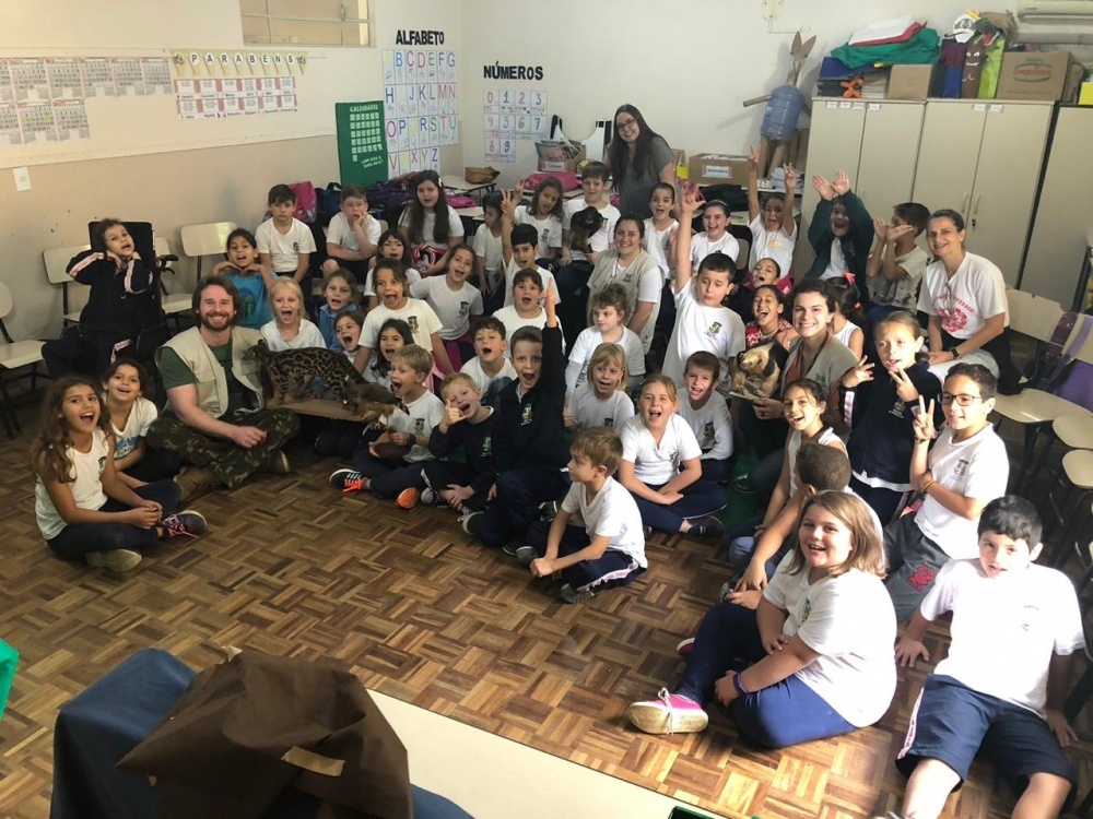 Aproximadamente 60 estudantes da EMEB Ricieri Marcatto, localizada no Rio Cerro I, participaram de palestras com a equipe de Educação Ambiental da Fundação Jaraguaense de Meio Ambiente, na segunda-feira (29). As palestras aconteceram nos turnos matutino e vespertino e foram destinadas aos alunos de 1º e 2º anos.Conforme o Chefe de Educação Ambiental, Christian Raboch Lempek, recentemente, os professores destas turmas trabalharam com os alunos o tema Mata Atlântica e animais da região e, por isso, foi muito oportuna a participação da equipe da Fujama. “Levamos cinco animais empalhados que fazem parte do nosso acervo e isso chamou muito a atenção dos estudantes e contribuiu para o entendimento deles em relação à fauna regional”, comentou.Ainda segundo Christian Lempek, a Escola Ricieri Marcatto está localizada numa região de área ainda preservada e isso faz com os estudantes estejam inseridos no processo de preservação. “Num dos turnos, enquanto estávamos na Escola, fomos chamados para capturar uma cobra cipó. Isso também contribuiu para enriquecer o conteúdo. Explicamos para eles sobre os cuidados e para não tentarem capturar esses animais e também da importância que os mesmos têm para o equilíbrio ecológico”, afirmou Lempek, que é biólogo.A coleção didática da Fundação Jaraguaense de Meio Ambiente conta com cinco animais que foram taxidermizados (empalhados) depois de encontrados mortos ou que morreram após serem socorridos feridos e não resistirem. Fazem parte do acervo cachorro-do-mato, gato maracajá, tamanduá-mirim, gavião carijó e uma corujá murucututu. Quatro deles foram encontrados atropelados e uma das aves colidiu contra o vidro de uma casa e morreu.