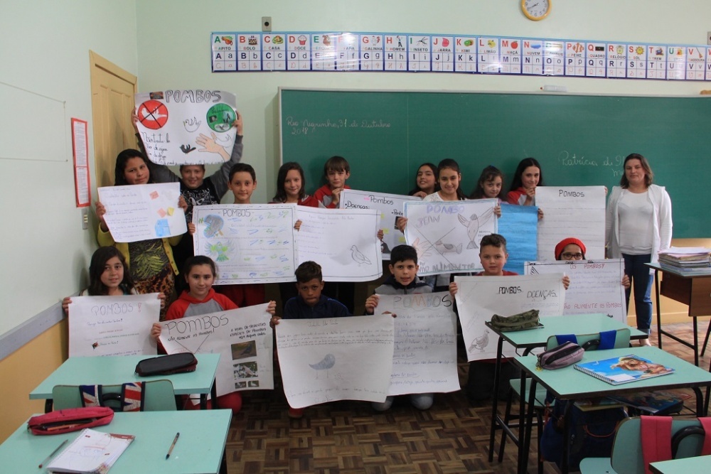 Quando iam brincar ou fazer atividades no pátio da EMEB Professora Irene Olinda Teifke Ribeiro, os estudantes do 5º ano 1 e 2 contavam com a companhia de pombos. Ao lado das janelas das salas, as aves também aproveitavam para se alimentar e descansar. A presença deles na escola preocupou a professora Patrícia Oliveira que transformou o problema em um motivo para despertar o interesse dos estudantes para uma pesquisa com rigor científico, tipo de estudo que eles tinham pouco contato. Intitulado como Projeto Pombo, a iniciativa estimulou as crianças a alertarem a comunidade escolar sobre as doenças, sintomas e cuidados com esses animais.
