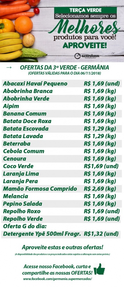 Ofertas Germânia Supermercados para esta terça-feira verde