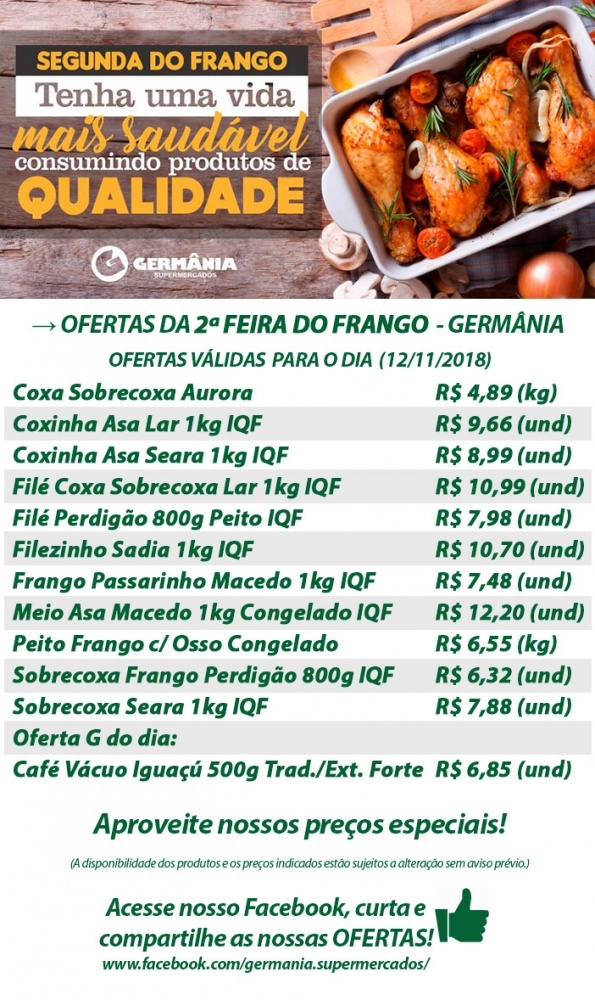 Ofertas Germânia Supermercados para esta Segunda-Feira do Frango
