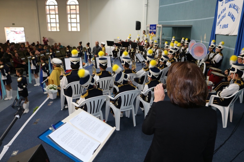 Na noite de quarta-feira, dia 21, a Banda Marcial da Escola Básica Municipal Denise Harms realizou 3º Concerto musical em comemoração aos 11 anos de fundação da Banda, o evento ocorreu na Igreja Batista no bairro Cruzeiro.