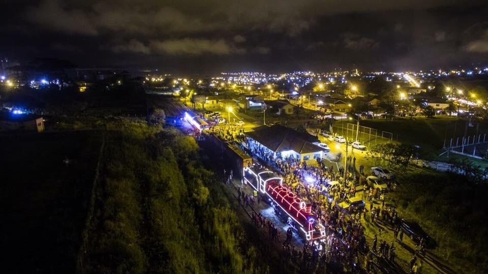 Neste domingo, 25 de novembro estará passando pela cidade de Mafra um trem de Natal composto por uma Maria Fumaça com sete vagões iluminados, Papai Noel e música no último vagão.