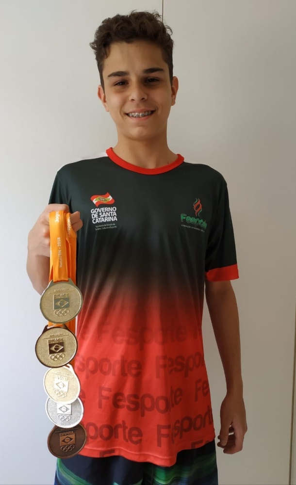 O atleta conquistou três medalhas de ouro, 1 de prata e 1 de bronze. Há mais de oito anos, nenhum atleta de 12 a 14 anos conseguiu este feito.