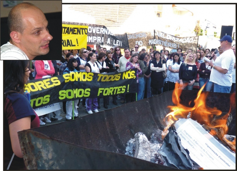 São Bento - Um ato realizado em frente à Gerência Regional de Educação de São Bento do Sul reuniu dezenas de professores da Rede Estadual na tarde de ontem, quinta-feira. Eles queimaram simbolicamente seus diplomas em frente ao órgão, fazendo inflamados e emocionados discursos por conta da situação por que passam. Na semana passada, o Sindicato dos Trabalhadores em Educação de Santa Catarina (Sinte/SC) declarou a greve da categoria, ganhando grande adesão em todo o Estado. Também na semana passada, alunos e professores saíram às ruas em distintas ocasiões em São Bento - em uma delas chegando a interditar a rua Jorge Lacerda, da prefeitura. Os manifestantes, principalmente os alunos, aproveitaram para pedir também o passe-livre no transporte urbano.