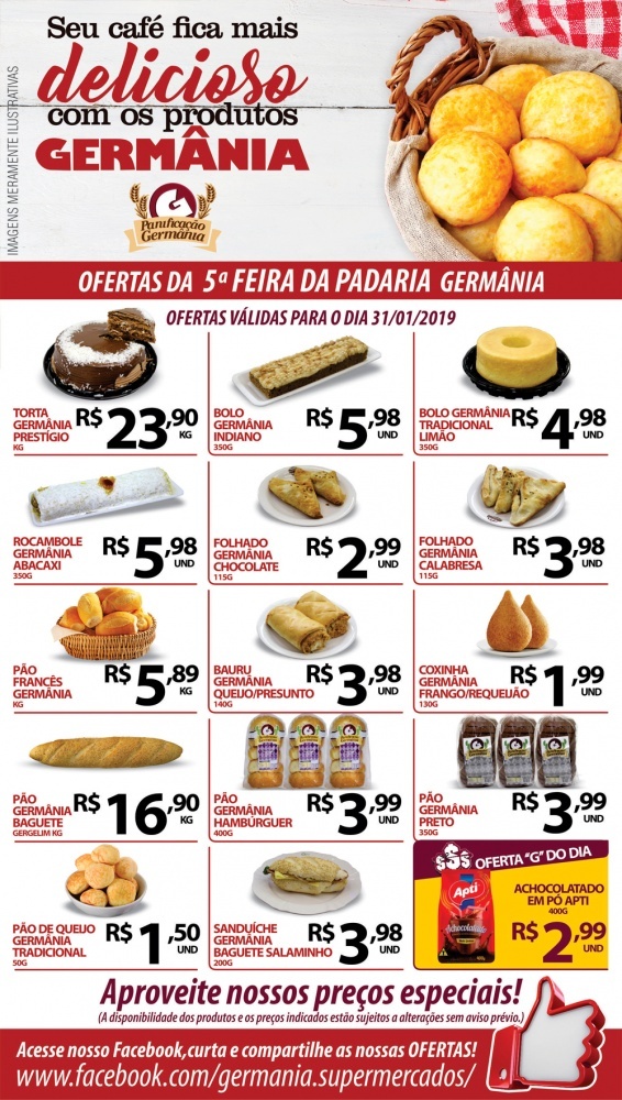 Ofertas Germânia Supermercados para esta Quinta-Feira da Padaria, dia 31/01/2019.